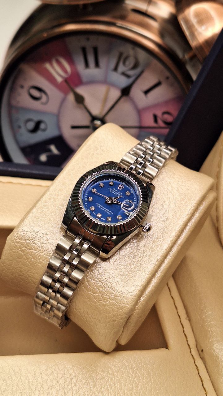 ساعت رولکس دیتجاست با طراحی گرد کلاسیک، شیشه ذرهبینی برای نمایش تاریخ و بدنه استیل مقاوم، گزینهای لوکس برای استفاده روزمره و رسمی است. این ساعت با بند فلزی ضد حساسیت، قفل ایمن و موتور کوارتز با انرژی باتری، انتخابی مطمئن برای آقایان خوشسلیقه است.
